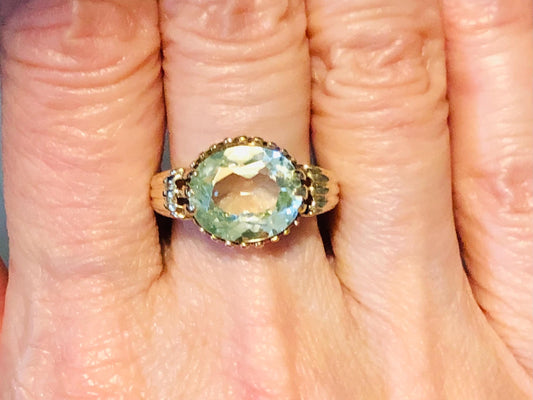 Vintage 10k Yellow Gold Sideways Green Spinel Ring, August Birthstone Color, Size 5