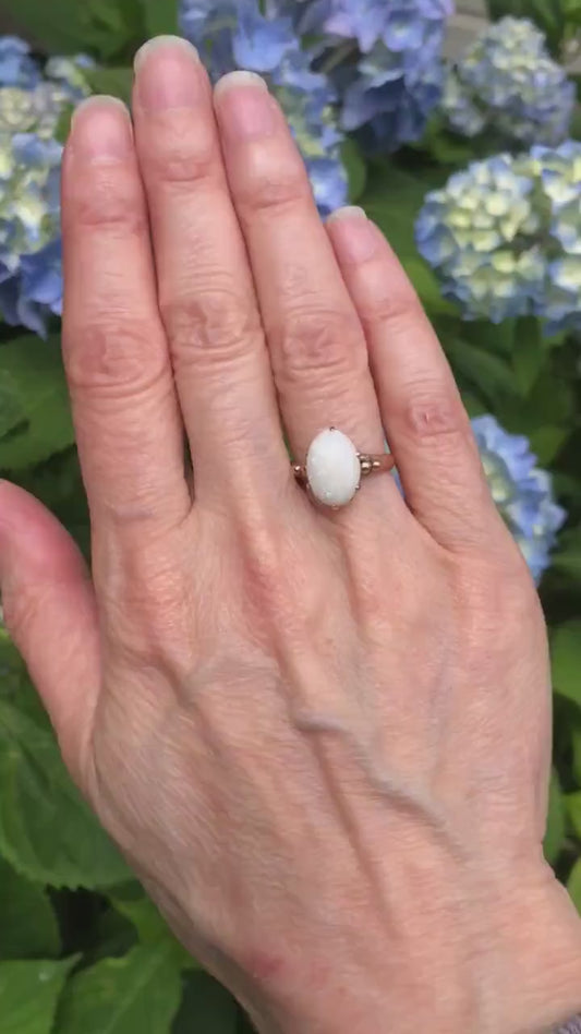 Vintage 14k Yellow Gold Natural Opal Ring, Oval October Birthstone Ring, Size 5.25