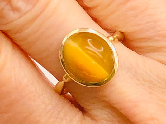 Vintage 14k Yellow Gold Tiger Eye Ring - Size 6