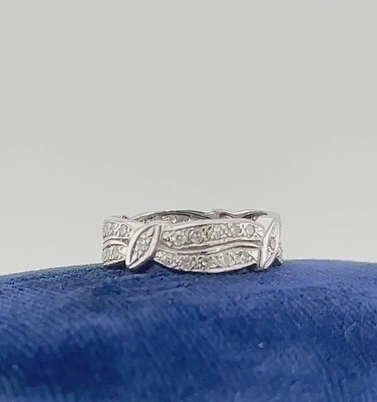 Diamond Eternity Ring, Vintage 14k White Gold Natural Stone Retro Wedding Band Size 7.25