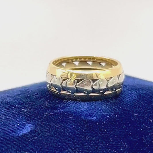 Vintage 14k Two-Tone Gold Hearts Wedding Band - 7.7 MM, Size 6.25