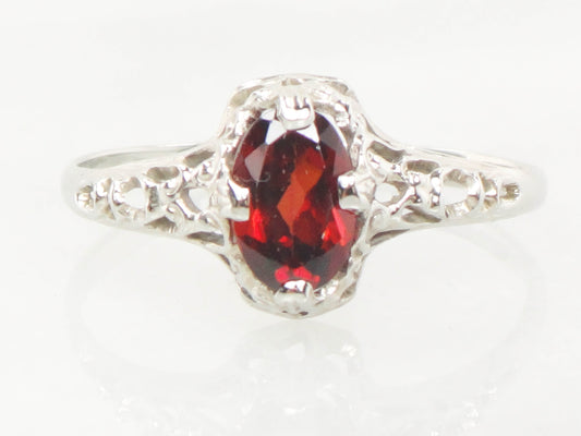 Vintage Art Deco 14k White Gold Garnet Filigree Ring - Size 3.5
