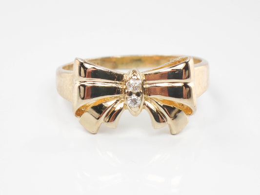 Vintage 14k Yellow Gold Diamond Bow Ring - Size 6.5