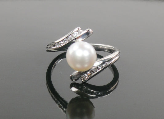 Vintage F & F Felger 14k White Gold Pearl Diamond Ring - Size 5.25