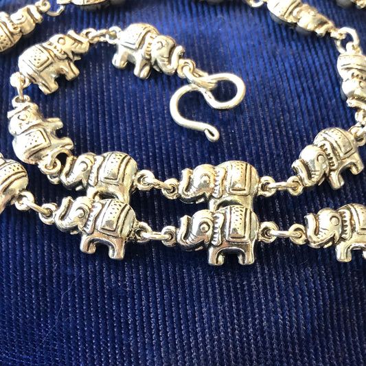 Vintage Sterling Silver Tiny Marching Elephants Necklace, 925 Good Luck Necklace 20"