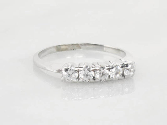 Vintage 14k White Gold Cubic Zirconia Wedding Band - Size 8