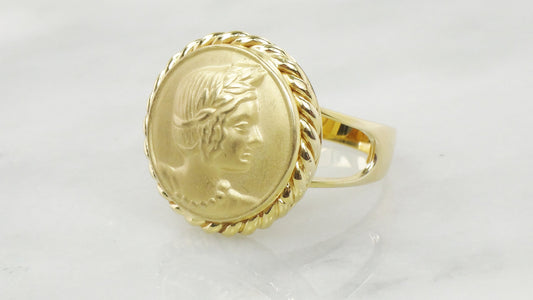 Vintage 14k Yellow Gold Cameo Ring - Italian Design, Size 10