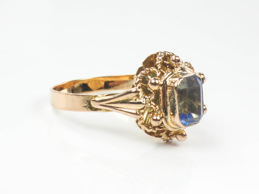 Vintage 19.2k Yellow Gold Cannetille Filigree Blue Glass Ring, Portuguese Hallmarked 800 Gold Ring, Size 6.75