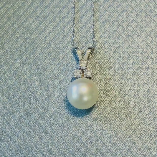 Vintage 14k Gold Pearl Diamond Necklace: Bridal Pendant, 18" Chain