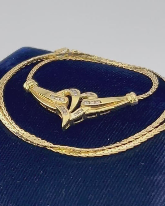Vintage 14k Yellow Gold Diamond Heart Necklace - 17"
