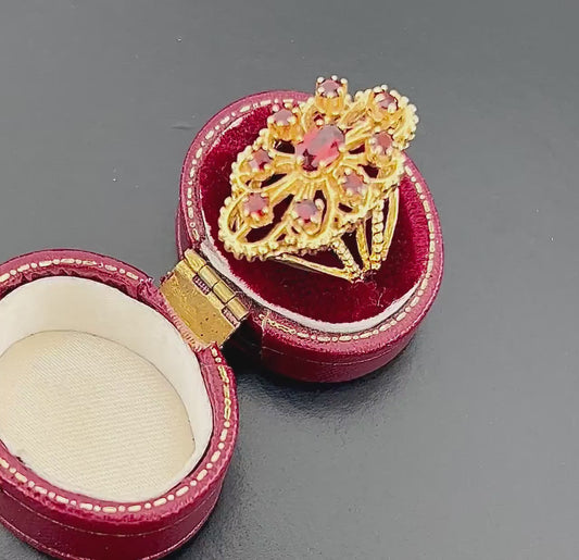 Vintage 14k Yellow Gold Large Garnet Cluster Ring - January Red Birthstone Ring - Size 7.25