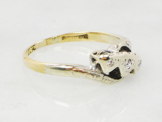Vintage 18k Diamond Art Deco Ring: Triple Heart Promise Ring, Size 5.5