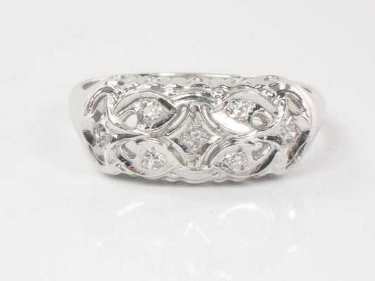 Vintage 14k White Gold Natural Diamond Ring Wide Pierced Wedding Band Size 11