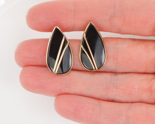 Vintage 14k Yellow Gold Black Onyx Teardrop Shaped Stud Earrings with Post BacksRegular price $140.00Regular priceUnit price / per
