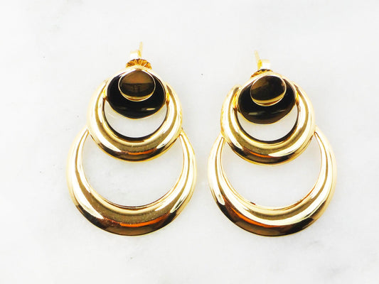Vintage 14k Yellow Gold & Onyx Dangle Earrings - Circle Design - 1980s Fine JewelryRegular price $1,094.00Regular priceUnit price / per-