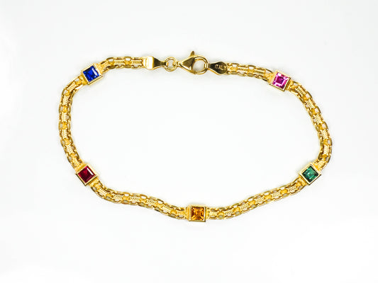 Estate 14k Yellow Gold Multi-Colored Gemstone Bismark Bracelet 8"