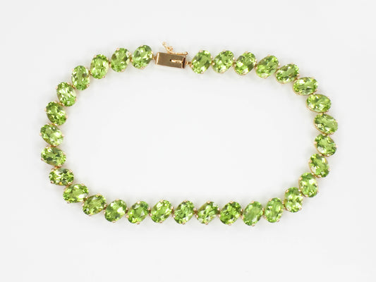 Estate 14k Yellow Gold Oval Cur Natural Peridot Tennis Bracelet, Green Stone Bracelet, 8"