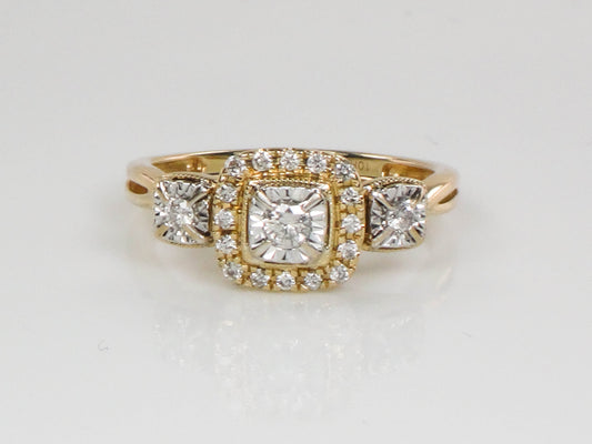 Estate 10k Two Tone Gold Diamond Halo Engagement Ring, Past Present Future Ring, Anniversary Ring