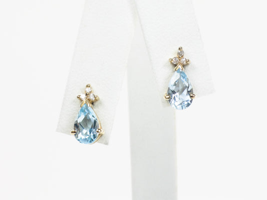 Estate 14k Yellow Gold Teardrop Cut Topaz and Diamond Stud Earrings