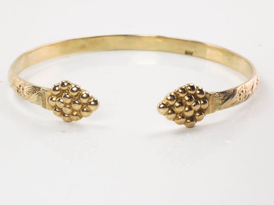 Gold Cuff Bracelet - Vintage 10k Solid Flowers and Grape Design Fine Jewelry