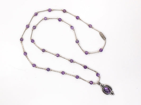 Vintage Sterling Silver Purple Amethyst Drop Necklace 18"