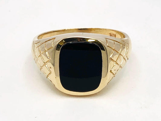 Vintage Solid 10k Yellow Gold Men's Onyx Ring - Black Stone Ring - Size 11