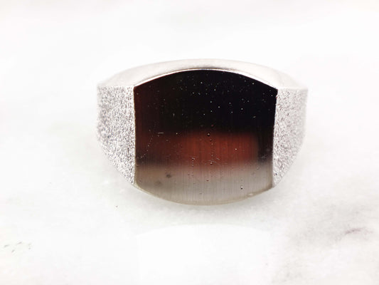 Vintage Sterling Silver Tiger Eye Ring: Mid-Century Modern Unisex Band, Size 9.75