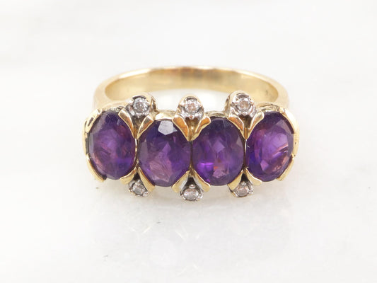 Vintage 10k Gold Purple Stone Ring with Diamond Accents: Thin Band, Size 6.5