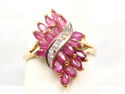 Vintage 10k Gold Ruby Diamond Halo Ring - July Birthstone, Size 6