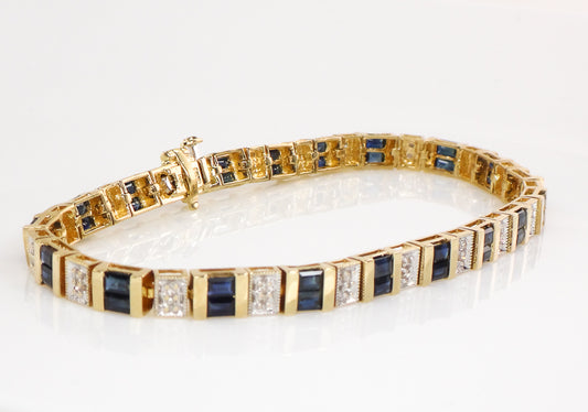 Vintage 14k Two Tone Gold Natural Blue Sapphire and Diamond Bracelet 7 1/4"