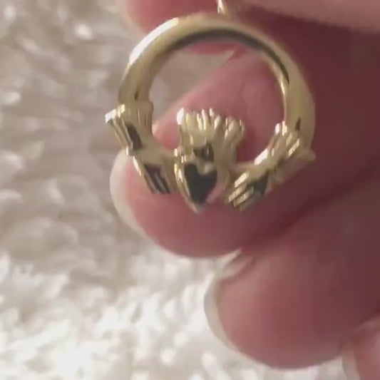 Vintage Solid 9k Yellow Gold Claddagh Pendant, Small Irish Claddagh Charm