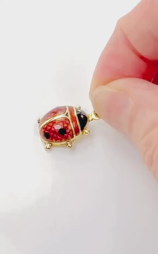 Vintage 18k Gold Puffy Ladybug Pendant with Red and Black Enamel, Good Luck Charm