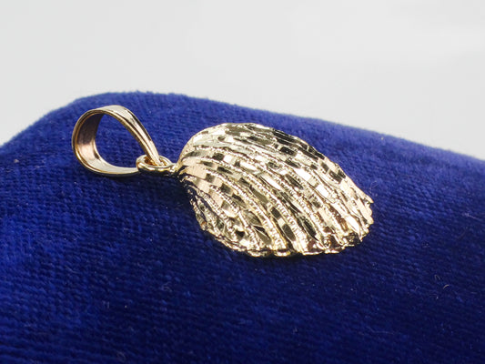 Solid 14k Yellow Gold Shell Pendant, Seashell Charm