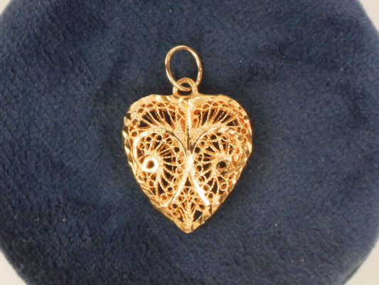 Vintage Estate 14k Yellow Gold Filigree Heart Pendant Charm