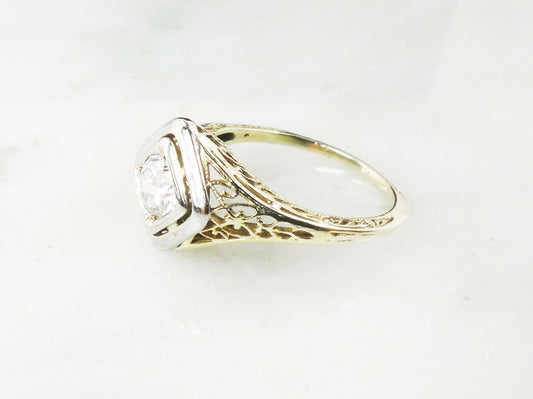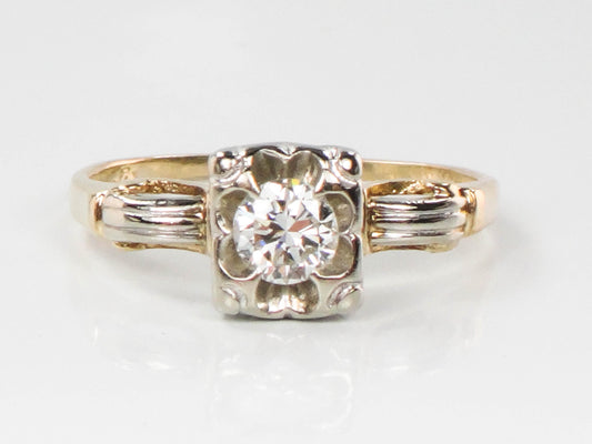 Vintage 14k Two Tone Gold Old Mine Cut Diamond Engagement Ring - 1940s Size 6.75