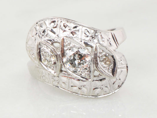 Antique 14k Gold Diamond Engagement Ring: Art Deco Filigree, Circa 1930