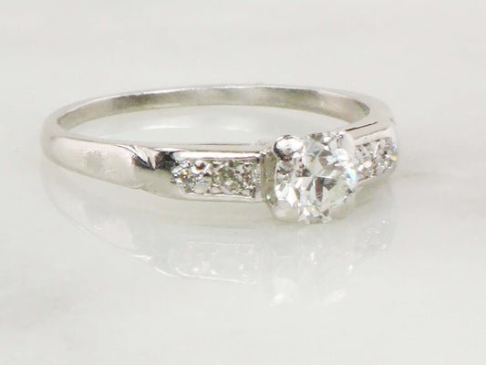 Vintage Platinum Diamond Engagement Ring: Transitional Cut, Circa 1940s, Size 7.5