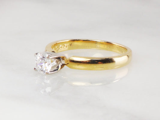 Vintage .35 Carat Diamond Solitaire Engagement Ring, 14k Yellow Gold, Size 6.75