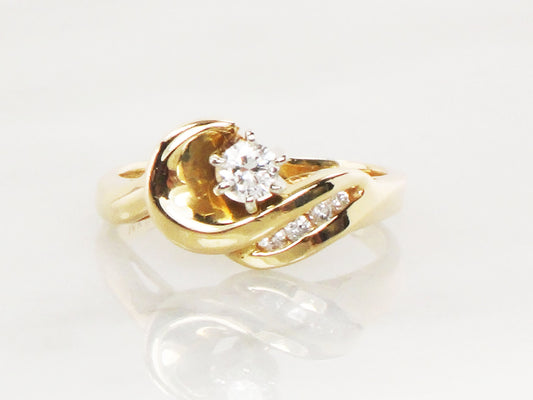 Vintage Diamond Engagement Ring: 14k Yellow Gold Swirl Design, Size 4.75
