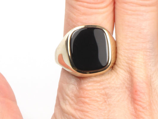Vintage Men's 9k Yellow Gold Onyx Ring: London Hallmarks, Circa 1935, Size 11.25