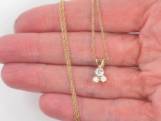 Vintage 14k Yellow Gold Three Diamond Necklace: Approximately .40 Carat TDW 16"