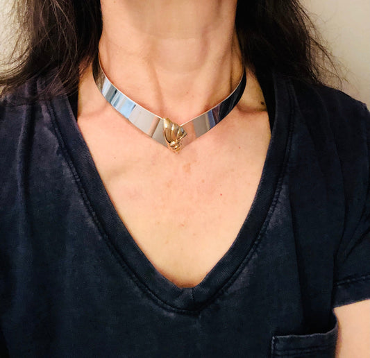 Vintage Sterling Silver 14k Gold Shell Collar Necklace