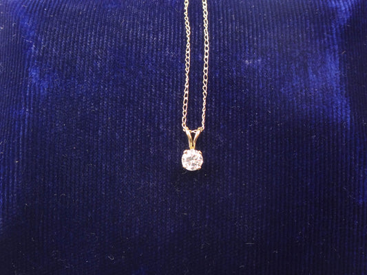 Vintage 14k Yellow Gold Round Natural Diamond Pendant Necklace, Approximately .25 CTS, 17.5"