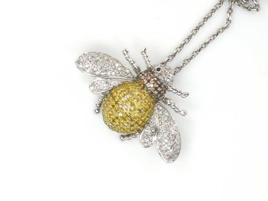 Vintage 14k Gold Diamond Bee Necklace, Large Jeweled Bumble Bee Pendant, Approx 1 Carat TDW