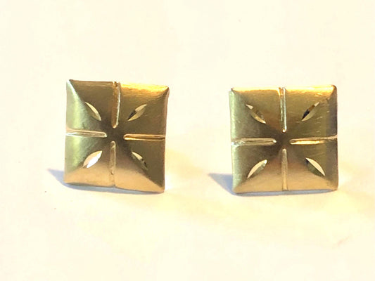 Vintage 14k Yellow Gold Square Shaped Starburst Stud Earrings