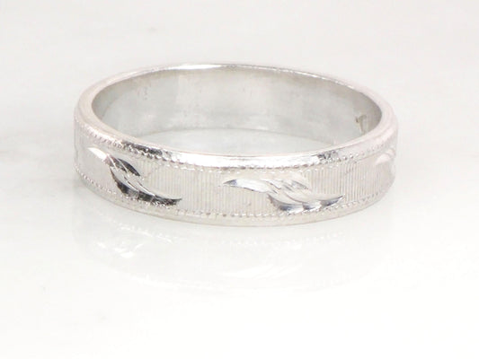 Vintage Platinum Wedding Band: Mid-Century Engraved Stacking Ring, Size 5.5