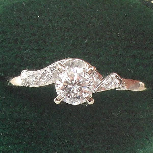 Vintage Keepsake Diamond Engagement Ring: 14k White Gold, Round Brilliant Cut