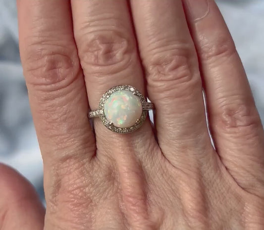 Vintage Platinum Opal Diamond Ring: October Birthstone, Circa 1930