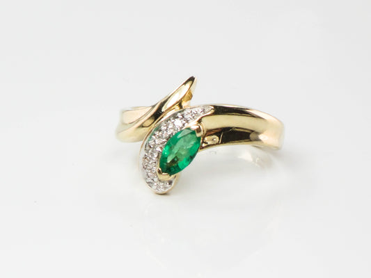 Vintage 10k Two Tone Gold Natural Emerald and Diamond Snake Ring, May Birthstone Ring, Size 4.25