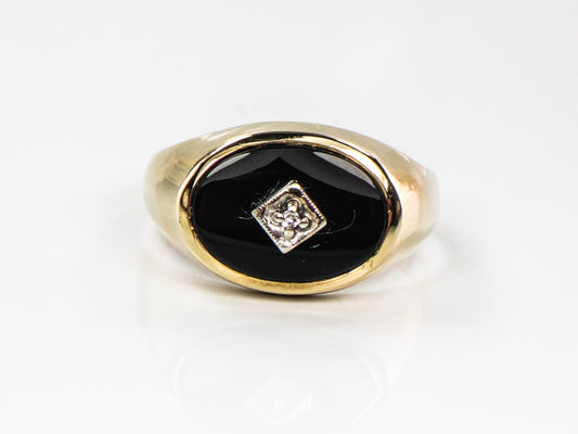 Vintage 14k Yellow Gold Black Onyx and Diamond Ring, Gold Men's Ring Size 11